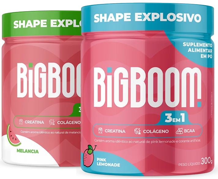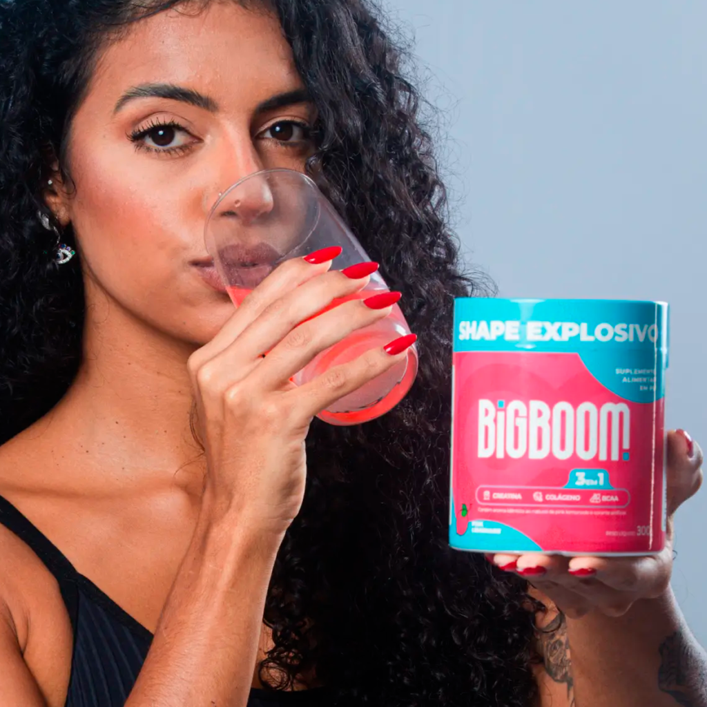 BigBoom não é apenas mais uma creatina comum. É a primeira 3 em 1, com colágeno e BCAA do Brasil, além do sabor incrível de Pink Lemonade ou Melancia. Reunimos tudo que uma mulher precisa para ter um shape incrível, alinhando sua dieta e treinos com nossa creatina.